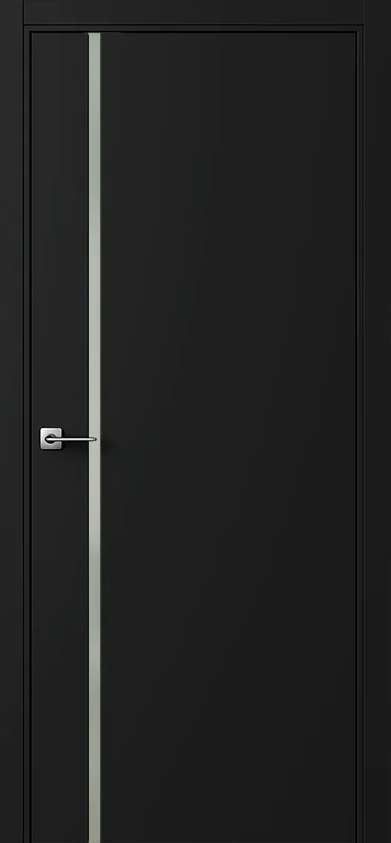 Межкомнатная дверь ПО БЭЙС 1/1 в цвете Чёрный софт со стеклом RAY белый