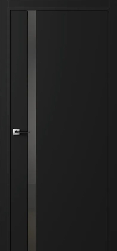 Межкомнатная дверь ПО БЭЙС 1/2 в цвете Чёрный софт со стеклом RAY серый