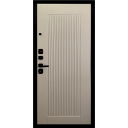 "ДК-18" Черный + Орех Каньон , серия DESIGN, толщина стали 1,5 мм, с внешней стороны сборная МДФ панельль 16 мм , цвет - орех каньон + софт черный, с внутренней стороны: панель на выбор фрезерованная, 10мм/царговая, 16мм/с зеркалом, 16мм , толщина полотна от 100 мм, 3 контура уплотнения один из них магнитный, основной замок KALE 442 цилиндровый, дополнительный замок - KALE 447 сувальдный, регулировочный эксцентрик, ночная задвижка, наполнение полотна - базальтовая плита высокой плотности, утепление рамы - минеральная вата, ширина 860, 960, высота 2050 мм